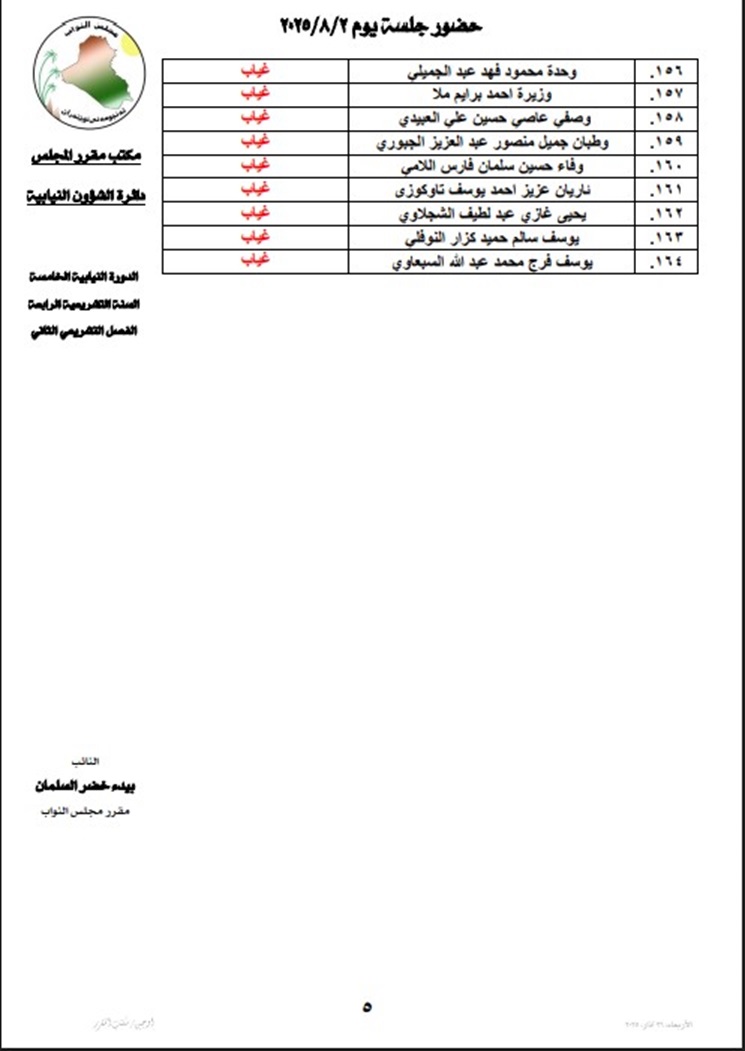 ورفع البرلمان الجلسة التي كان من المقرر عقدها في الساعة الواحدة ظهراً بسبب عدم اكتمال النصاب القانوني.