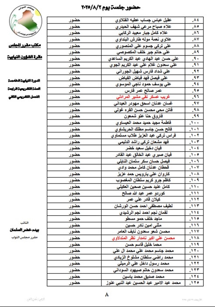 أعلنت رئاسة مجلس النواب، السبت، أسماء أعضاء المجلس المتغيبين عن جلسته اليوم.