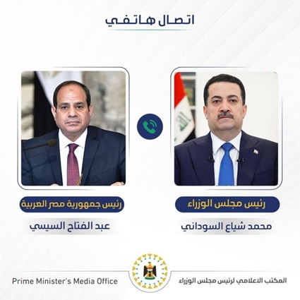 بحث رئيس مجلس الوزراء محمد شياع السوداني، مساء اليوم الخميس، (11 أيلول 2025)، في اتصال هاتفي مع الرئيس المصري عبد الفتاح السيسي، الهجوم الإسرائيلي على قطر.