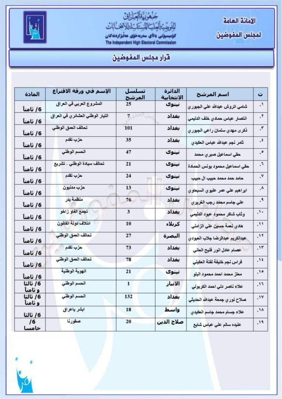 مجلس المفوضين يصادق على استبعاد 19 مرشحاً من انتخابات مجلس النواب