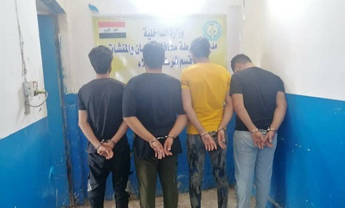 وأضاف ان "مفارز الشرطة تحركت بشكل فوري باتجاه الموقع، وبعد الملاحقة تمت إيقاف العجلة ضمن قاطع الكرادة بالقرب من مطعم صباح العربي"، موضحا انه "تم القبض على المتهمين وهم ( م.ص.خ من مواليد 1995 يعمل طبيب أسنان، م.ع.م من مواليد 1997 يعمل صيدلاني، أ.ض.ش من مواليد 1996، يعمل طبيب أسنان، ضبط بحوزته سلاح نوع HS ، ع.ش.م من مواليد 1995، يعمل ضابط برتبة نقيب (طبيب أسنان) وضبط بحوزته سلاح نوع أبونك".