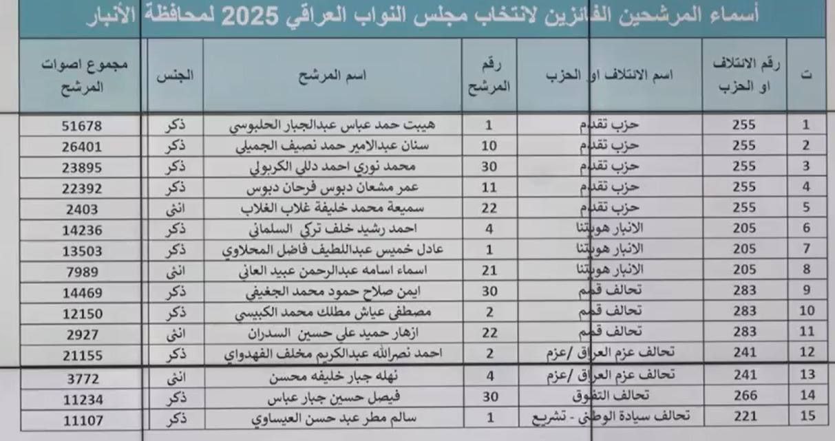 اسماء الفائزين في الانتخابات البرلمانية يمحافظة الانبار