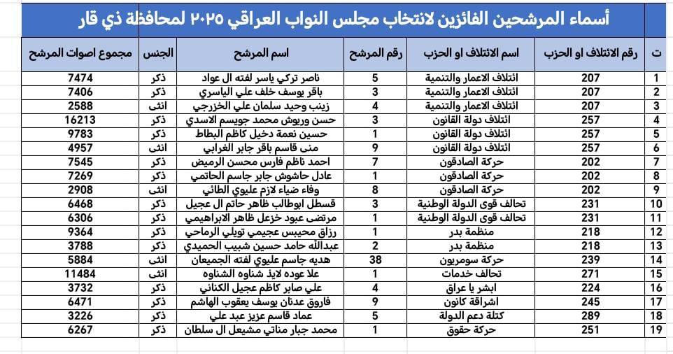 اسماء الفائزين في الانتخابات البرلمانية بمحافظة ذي قار