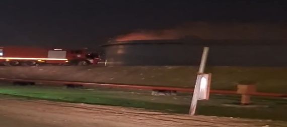 اخمدت فرق الدفاع المدني ، حريقا اندلع في احد الخزانات بمستودع الفاو النفطي.