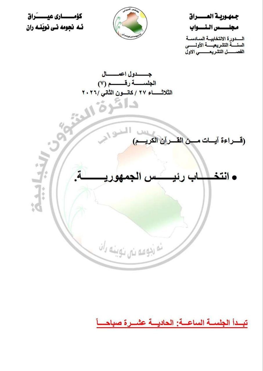 اعلن مجلس النواب عن عقد جلسته السابعة في الساعة الحادية عشرة صباح يوم غد الثلاثاء ، لانتخاب رئيس الجمهورية