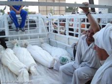 بعد قصفهم بالطائرات الامريكية بذريعة أنهم من جيش القدس: النجف الاشرف تستقبل جثامين (26) شهيداً مدنيا من شيعة ديالى.
