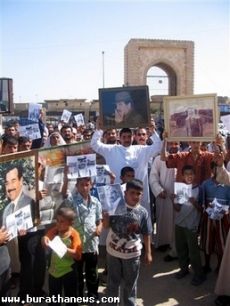 اهالي تكريت يرفعون صور الطاغية صدام قبل توجههم لاداء صلاة الجمعة