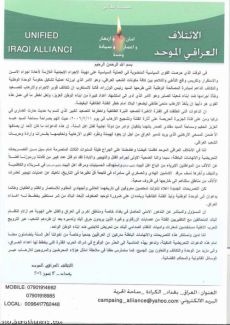 بيان الائتلاف العراقي الموحد حول تصريحات حارث الضاري الاخيرة