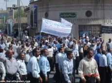 منتسبي شرطة حماية المنشات في النجف الاشرف يتظاهرون اليوم بالعصي ومهددين بانهم سيتظاهرون غدا حاملين اسلحتهم
