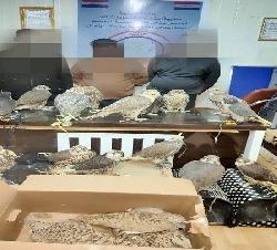 استخبارات القيادة وكمرك السيطرة البحرية يحبطون عملية تهريب طيور نادرة { صقر وحباري }