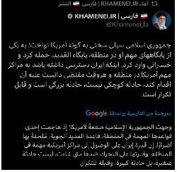 سماحة السيد الخامنائي: استهداف قاعدة العديد ليس حادثة صغيرة بل كبيرة يمكن تكرارها ونستطيع الوصول لمراكز أمريكية مهمة