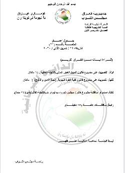 جدول اعمال جلسة البرلمان ليوم غد