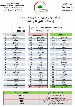العراق يسجل 3701 إصابة جديدة بكورونا وتماثل 2971 مصاباً للشفاء