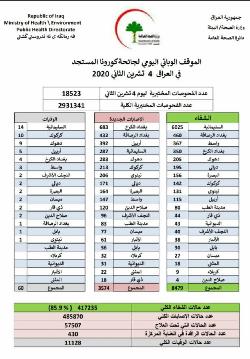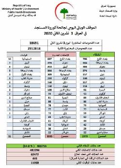 الصحة تعلن الموقف الوبائي لفيروس كورونا في العراق