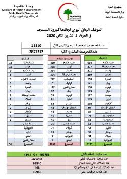 استمرار ارتفاع حالات الشفاء على الاصابات.. الموقف الوبائي لكورونا في العراق