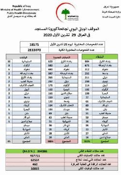 الموقف الوبائي الخاص بفيروس كورونا في العراق