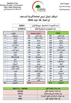 الموقف الوبائي اليومي لجائحة كورونا المستجد في العراق