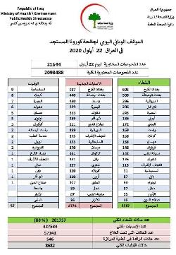 الموقف الوبائي اليومي لجائحة كورونا المستجد في العراق