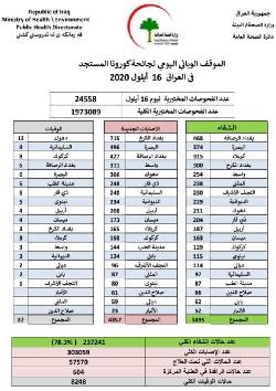 الموقف الوبائي اليومي لجائحة كورونا في العراق