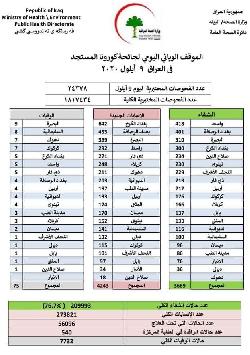 الموقف الوبائي لكورونا في العراق لليوم الاربعاء