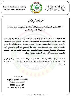 كتائب سيد الشهداء تنعى القيادي الشهيد السيد حيدر الموسوي
