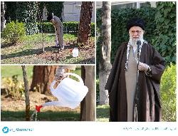 سماحة اية الله العظمى السيد علي الخامنئي يشكر الاطباء لمواجهتهم كورونا وينشر صورا وهو يسقي زرعه