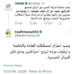 السفارة العراقية بأميركا ترد على الأمم المتحدة بشأن تغريدة لها