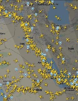 بالصورة.. سماء العراق تمتلئ بالطائرات بعد منع الطيران فوق ايران