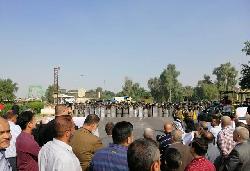 عدد من موظفي مؤسسة الشهداء يتظاهرون امام مدخل الخضراء احتجاجا على الدعوة الى الغاء حقوق الشهداء