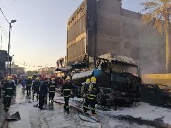 اخماد حريق بعد انفجار صهريج اثناء تفريغ الوقود في النجف