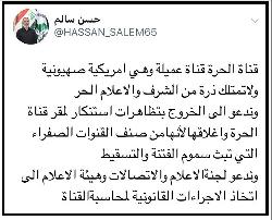 النائب حسن سالم: قناة "الحرة" عميلة ولا تمتلك ذرة من الشرف ويجب اغلاقها
