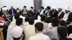 سماحة المرجع الكبير السيد الحكيم (مدّ ظله) يستقبل طلبة العلوم الدينية الدراسين في مؤسسة آية الله العظمى السيد محسن الحكيم (قدس سره) للدراسة الحوزوية