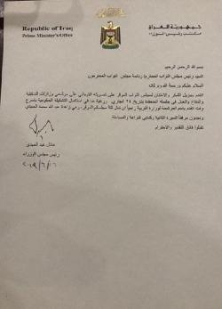 بالوثيقة.. عبد المهدي يرسل اسم مرشحة التربية واسماء المرشحين للدرجات الخاصة للبرلمان