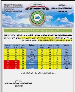 ارتفاع في درجات الحرارة واللون الاحمر يغطي 4 محافظات