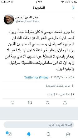 الشيخ جلال الدين الصغير يعلق في تويتر حول وفاة الرئيس المصري المعزول محمد مرسي