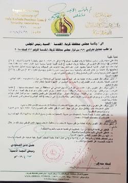 مجلس محافظة كربلاء يصوت على طلب التعديل فقرتي (2-3) من قرار مجلس المحافظة الخاص بنقل النفوس