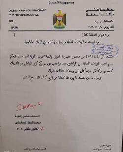 محافظ المثنى يصدر قراراً يمنع فيه سحب الهواتف المتنقلة من المواطنين عند مراجعتهم إلى دوائر المحافظة.