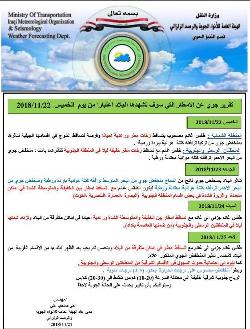 الانواء تنشر تقريرا عن الحالة الجوية اعتبارا من اليوم الخميس ولغاية الاحد