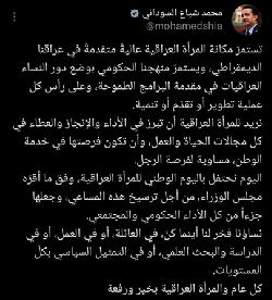 السوداني: مكانة المرأة العراقية عالية ومتقدمة في عراقنا الديمقراطي
