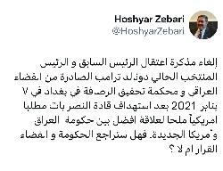 هوشيار زيباري: امريكا طلبت من العراق إلغاء مذكرة الاعتقال بحق ترامب