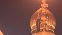 تبديل رايتي قبتي الإمامين الكاظمين (ع) ايذاناً ببدء مراسم العزاء