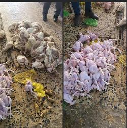 ضبط محل يذبح الدجاج الميت بفيروس "نيوكاسل" ويبيعه للمطاعم على شكل دجاج مذبوح وطازج!