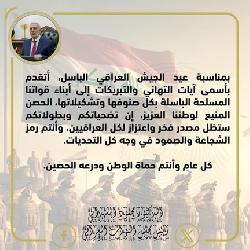 المشهداني يهنىء الجيش العراقي بذكرى تأسيسه