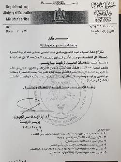 وزير التربية يكلف مديراً جديداً لتربية البصرة