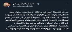 المندلاوي يهنئ العراقيين والعرب والمسلمين بحلول عيد الفطر ويدعو لنبذ العنف والتطرف
