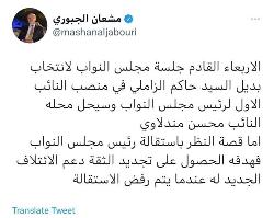 مشعان الجبوري يكشف هدف استقالة الحلبوسي (تغريدة)
