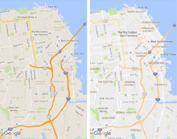 ويأتي التصميم الجديد ليُبرز أيضاً ما وصفته جوجل بـ “مناطق الاهتمام” التي ستُلوَّن على الخريطة بالبرتقالي، وهي المناطق التي تضم الكثير من الأنشطة والأشياء التي يمكن للمستخدم القيام بها.