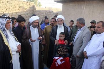 من جانبه بادر وفد من العتبة العباسية المقدسة وفرقةُ العبّاس{عليه السلام} القتالية لتكريم هذا الجهد الكبير والبطولة المتميّزة للطفل {علي}، فقام بزيارته وتفقّد عائلته وقدّم له مكافأةً وأهداه راية أبي الفضل العبّاس{عليه السلام} -حامي عيالات أخيه الحسين{عليه السلام}- تثميناً لدوره البطوليّ الشجاع.