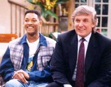 ولكن من أوائل اللقطات التي ظهر فيها ترامب في هيئته الكاملة التي رسمها لنفسه كانت في المسلسل الكوميدي "ذا فريش برينس أوف بيل آير"، الذي قدم فيه نفسه وزوجته آنذاك، مارلا مابلز، بفخر إلى ويل سميث وعائلته الثرية في مدينة لوس أنجليس. وصاحت هيلاري، ابنة عم سميث، حينما رأت ترامب قائلة: "أنت تبدو أكثر ثراء في الحقيقة".