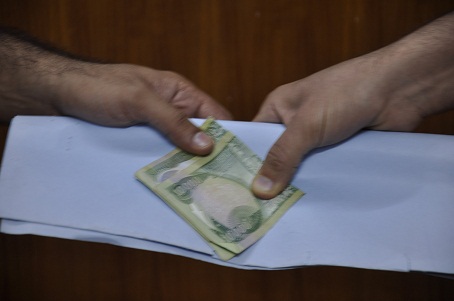 واضاف المصدر ان " المتهم قد طلب واستلم رشوة من احدى المواطنات في 15 / 8 / 2017 في دائرة التقاعد في البصرة مبلغا مقداره اربعمائة دولار امريكي واربعمائة وثمانون الف دينار عراقي بغية انجاز معاملة التقاعد الخاصة بزوجها الشهيد حيث تم القبض عليه متلبسا بالرشوة من قبل احدى مفارز هيئة النزاهة ".